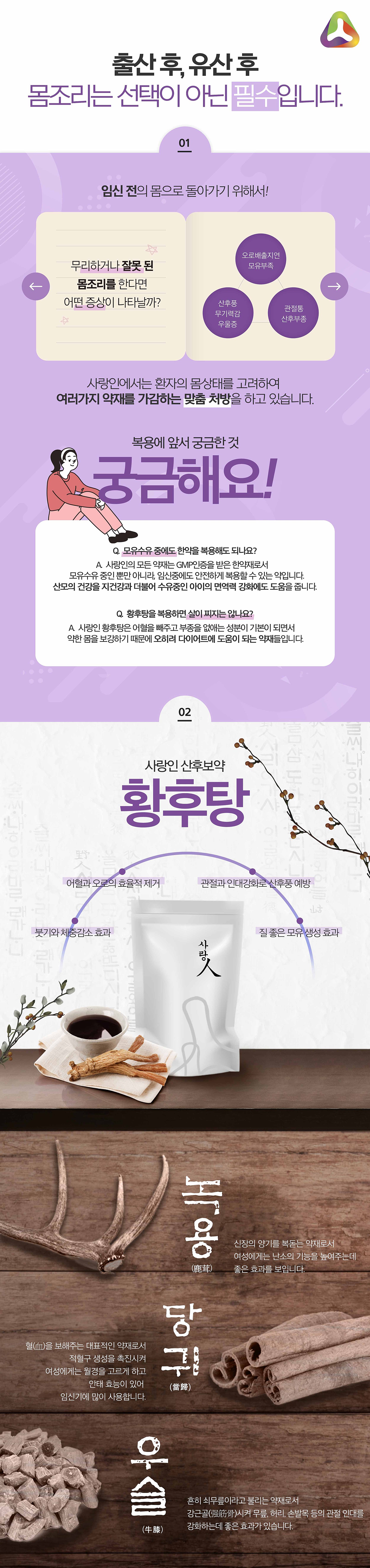 산후조리는 출산 전 몸 상태로 되돌아가기 위해 호르몬이 활성화되는 시기에 필요한 관리라고 할 수 있는데요. 임신과 출산 과정을 겪은 여성분들의 경우 기혈이 약해지고 근육이나 인대 그리고 관절이 이완되기 때문에 청주산후보약의 도움을 받아서 임신 전과 같이 건강한 상태로 회복하셔야 한다고 말씀을 드릴 수 있는데요. 출산 후 오로와 노폐물을 배출해주는 산욕기에 산후조리가 진행되지 않을경우 평생을 힘들게 보내게 될 수 있기 때문에 미루지말고 출산 직후부터 바로 상담을 진행하시는 것을 권해드리고 싶습니다.